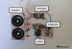 - Audio with YDA138-E Amplifier, PCM5102 and ESP32The YDA138-E is a compact Class-D audio amplifier. It can deliver up 20 W stereo output into 4 Ω speakers. With a power supply in …